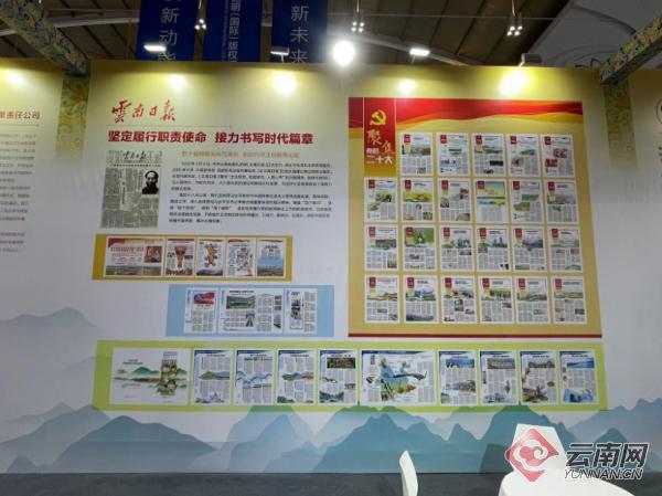 展区内,云报客户端作品《云岭锦绣图》采用“H5+手绘”的创作方式,用中国传统书画的手法,将云南千里边疆、青山绿水、标志性建筑及各族群众生产生活场景结合起来,展现出云岭大地欣欣向荣、各族儿女昂扬奋进的景象。此外,聚焦党的二十大系列报道、云报图画手绘以及缅、泰、老、柬文外宣四刊等内容吸引观众驻足观看。