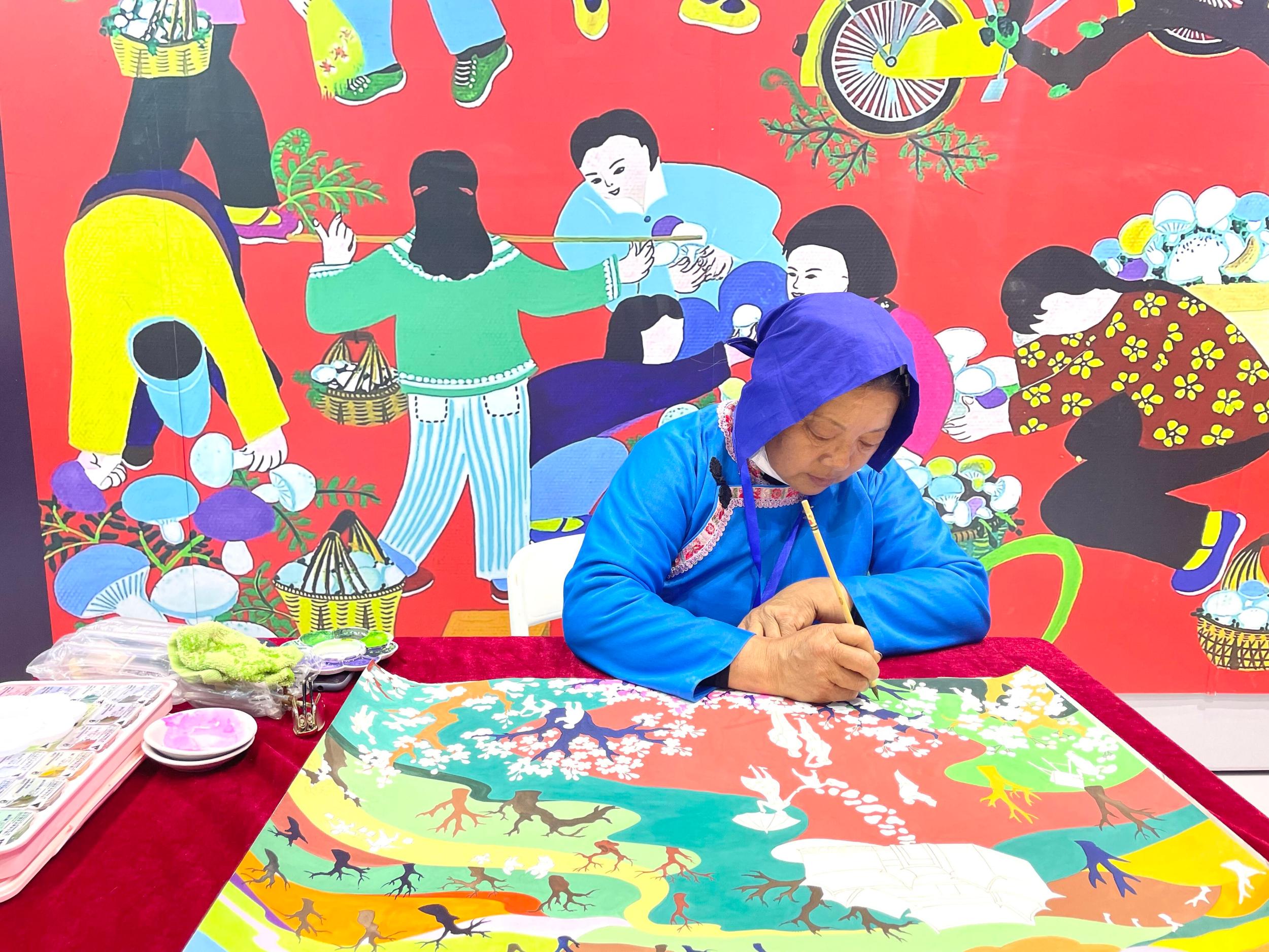 3月24日版博会开幕当天,呈贡区在现场对农民画非遗传承人刘琼丽的作品进行了版权登记。这让57岁、画了40年农民画的刘琼丽非常开心。