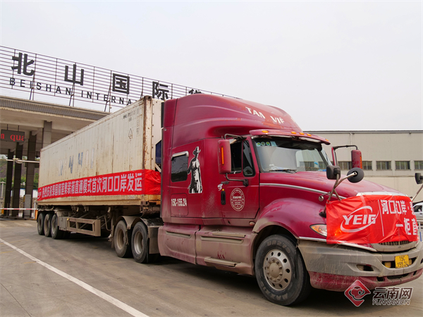 4月16日,在一声汽笛长鸣中,一辆满载泰国榴莲的集装箱运输车辆抵达中越边境河口口岸,经过整柜换装后发往内地市场,实现从果园到客户“一柜直达”。