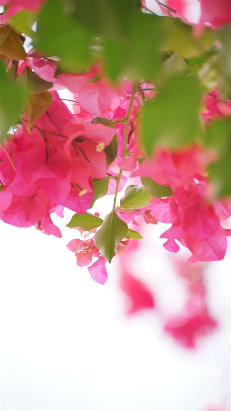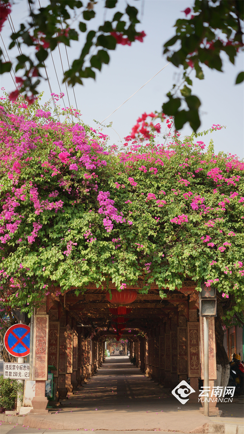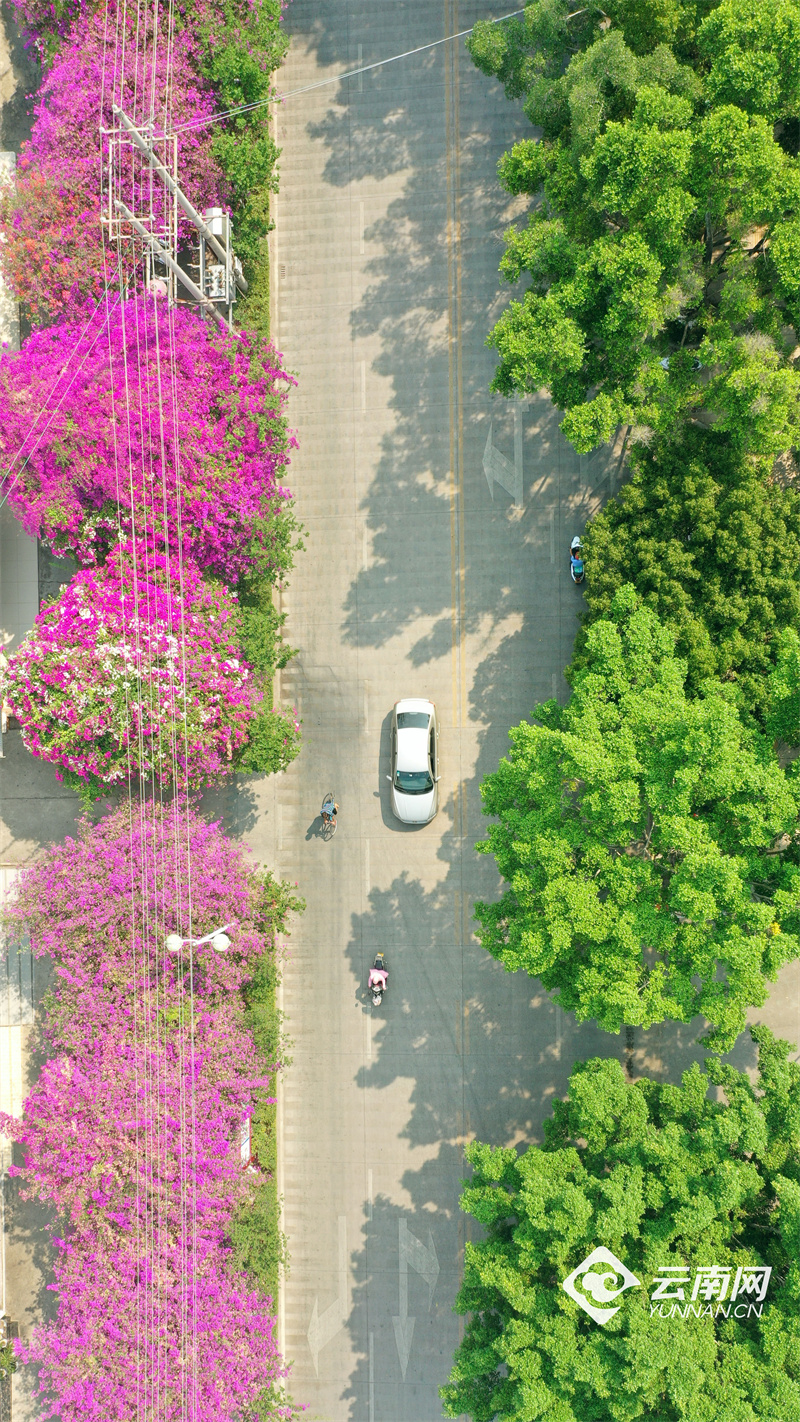 近日,云南省普洱市镇沅彝族哈尼族拉祜族自治县城迎宾路上的三角梅已进入盛花期。不论是漫步在廊道欣赏,还是空中俯瞰,水红色、玫红色的三角梅密密麻麻连成一片,成为镇沅一条独特的“花路”。