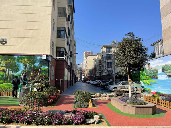 红塔区紫艺社区坚持“政企民协作多方共建、党建引领多元共治、完善配套资源共享、打造生态宜居共美”的“四共”原则,结合老旧小区改造,创新引入城市“绿道”、“绿肺”理念,对社区内的公共空间进行绿化美化,设置健康步道,增植云南樱花、山茶花等乡土树种500株,新建、改建休闲长廊14个,打造特色景观小品18个,社区绿化率由10%提高至22%左右,居住品质和整体环境明显改善,实现了美好环境与幸福生活同步提升、共同缔造。