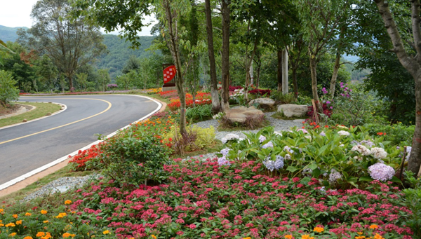 凤习路(K0+000-K15+000)位于临沧市凤庆县凤山镇安石村境内,路面为沥青混凝土路面,路基宽8.5米,路面宽6米,路段技术等级为四级。凤习路坚持“安全至上、崇尚自然、显山露水、彰显人文、路景融合”原则,按照“四季常绿”“四季见花”“四季有景”的要求,选择三角梅、春櫆、樱桃花、开花类乔木等绿植对公路两侧进行绿化美化,做到一路一树、一路一景。截至目前,凤习路共完成15公里绿美公路示范段建设,建成观景长廊1处,科技体验馆1幢,景观小品2个,路灯180盏;种植蓝花楹500株,春櫆1250株,三角梅1800株,木春菊及灌木150万余株,铺设草坪7411平方米。