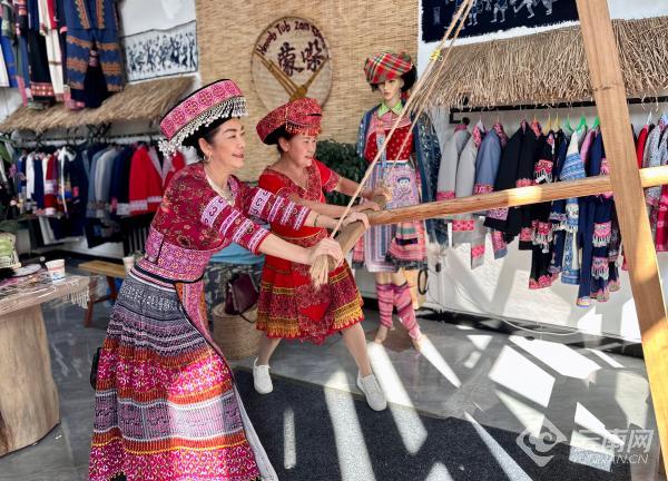 文化节上,陶书韩和“蒙哚”的员工忙着整理自家的苗族男子服饰产品,跳跃的色彩和多样的花纹吸引了不少省内外客商驻足欣赏。“在苗族男子服饰产品上下功夫的很少见,这件外套兼具了传统与时尚的美。”来自广西的客商拿起一件衣领和袖口绣有苗族花纹的红色西装外套赞不绝口,并与陶书韩交换了联系方式,未来准备展开深入的合作。