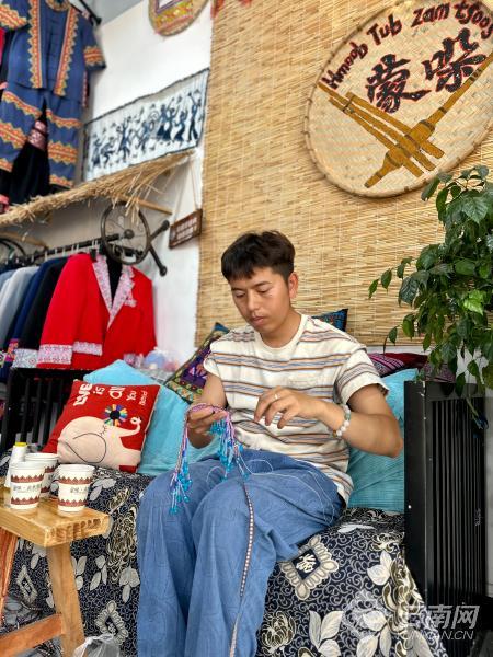 2014年,在外务工的陶书韩返回家乡从零学习苗族服饰制作。凭借着对苗族服饰浓烈的热爱,他克服了学习之路上的种种障碍,并且从一名学习者摇身一变为传播者。“以前只做女装的店铺,如今也开始做男装了,这是近几年最令我欣慰的变化。”陶书韩说。