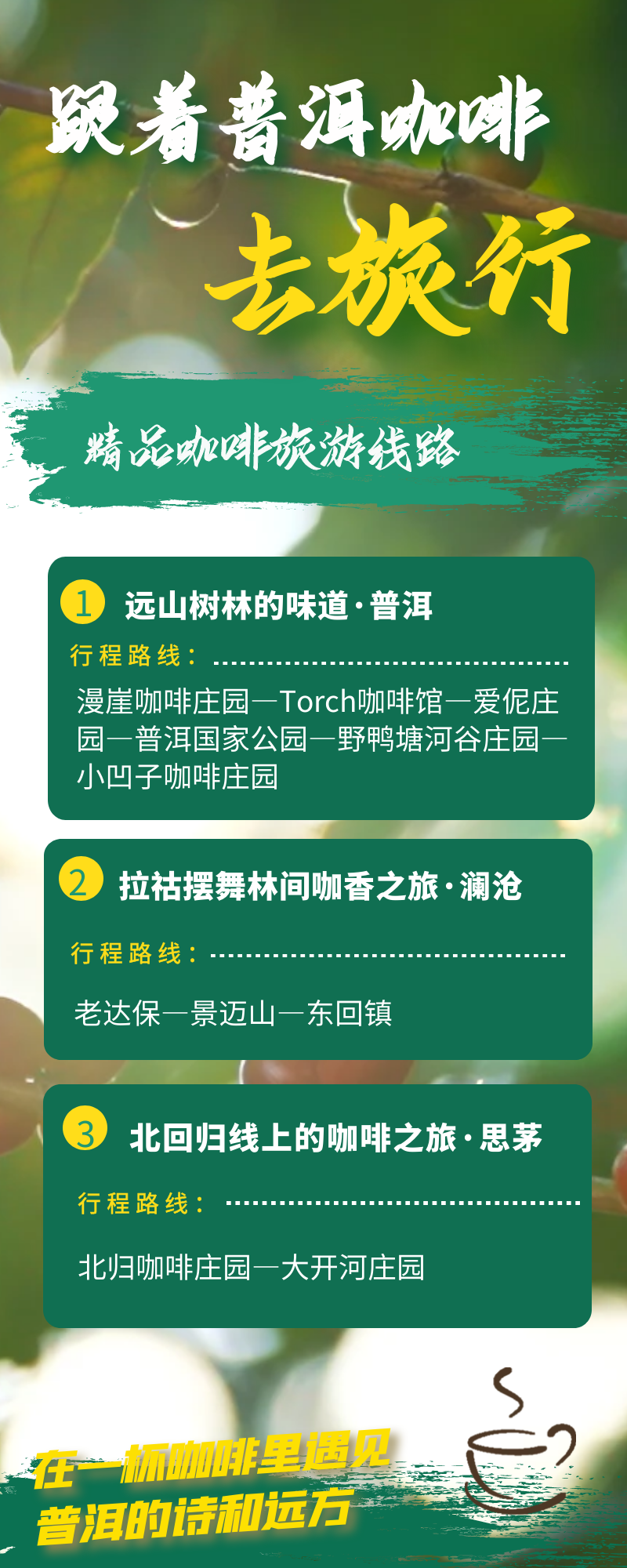 跟着普洱的小小咖啡豆开启大大的惊喜之旅吧,在普洱感受咖啡的多重魅力,沉浸于这一刻的咖啡时光。