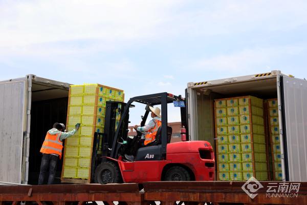 中铁联集昆明中心站副总经理徐超介绍,进入水果运输旺季以来,当天是水果到达量最大的一天。“我们采取了优先卸车、优先交付、优先提柜、优先回空的保障措施,同时开辟了站内掏箱功能,确保水果到达以后能够第一时间分拨到全国各地。”