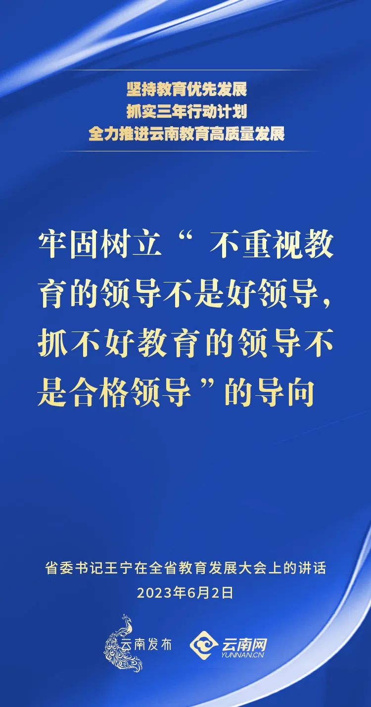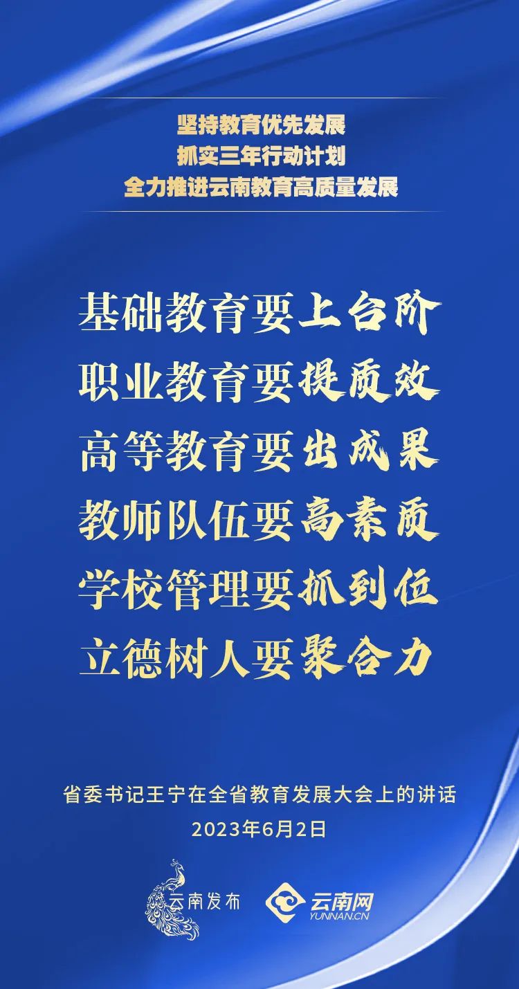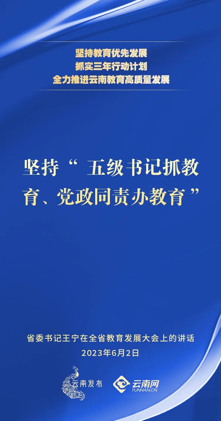推动全省教育高质量发展,要以习近平新时代中国特色社会主义思想为指导,全面贯彻党的二十大精神,深入学习贯彻习近平总书记关于教育的重要论述和考察云南重要讲话精神,认真落实习近平总书记致云南大学建校100周年重要贺信精神,加强党对教育工作的全面领导,贯彻党的教育方针,落实立德树人根本任务。