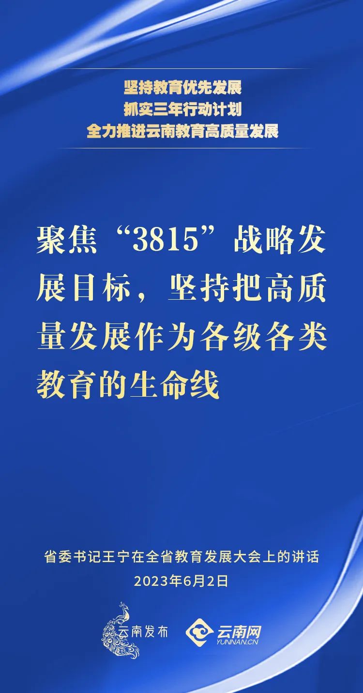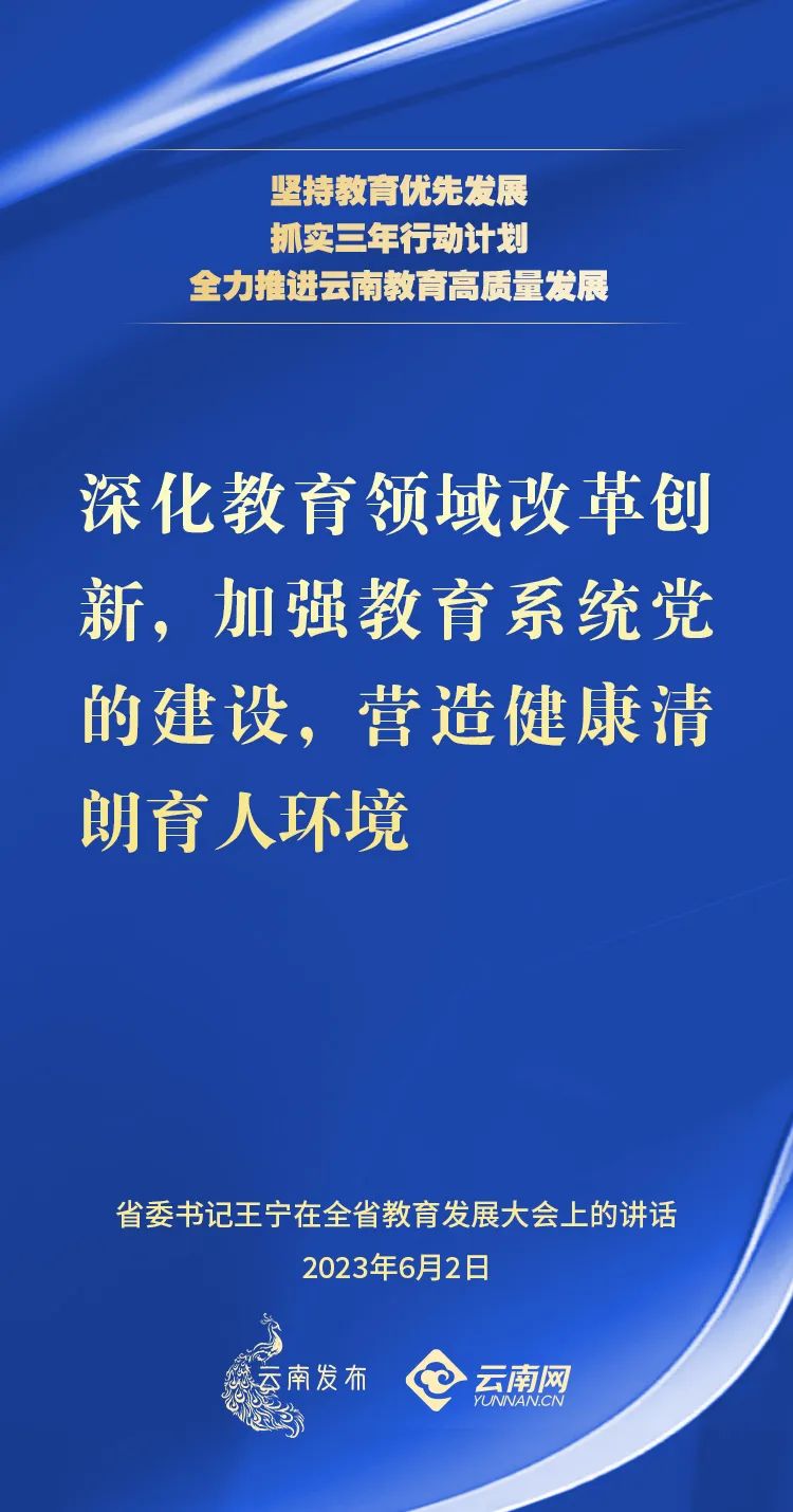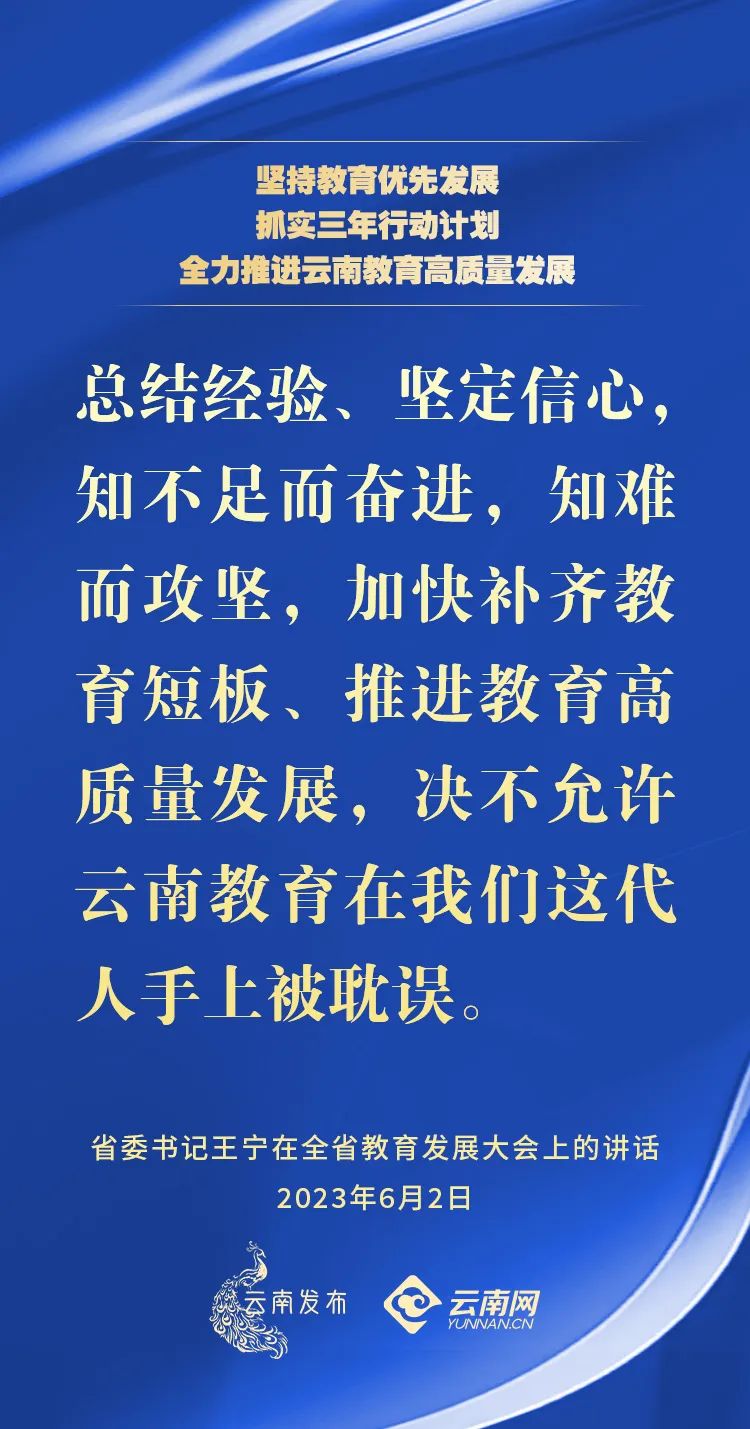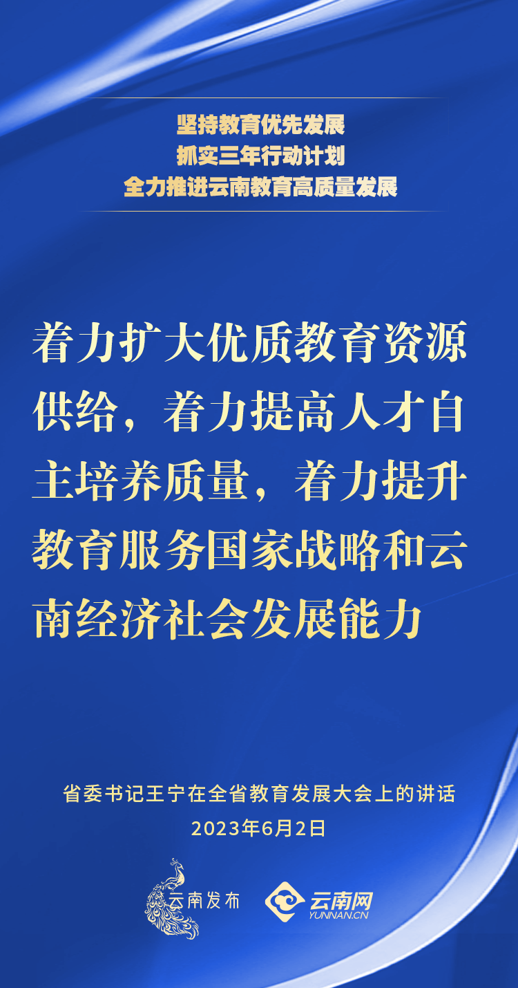 推动全省教育高质量发展,要以习近平新时代中国特色社会主义思想为指导,全面贯彻党的二十大精神,深入学习贯彻习近平总书记关于教育的重要论述和考察云南重要讲话精神,认真落实习近平总书记致云南大学建校100周年重要贺信精神,加强党对教育工作的全面领导,贯彻党的教育方针,落实立德树人根本任务。
