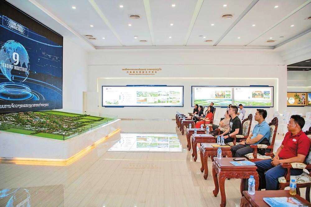 采访团在万象赛色塔综合开发区采访。 湖南日报记者 李健 云报全媒体记者 朱海 摄