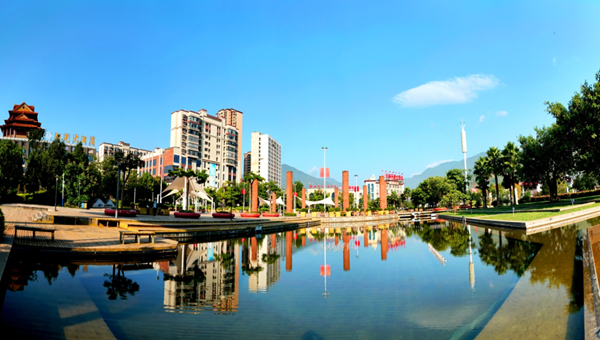 南涧彝族自治县县城建成区面积3.06平方公里,县城人口2.8万人,是全国8个彝族自治县之一。南涧县在绿色发展理念的引领下,始终以“增绿提质”为主线,以景区标准建设县城,不断优化城市绿地系统和山水空间格局,紧紧围绕人与自然和谐共生的目标,高位推进绿美城市建设。先后实施了一批水系景观、绿色走廊、生态慢道等“特色鲜明、景观优美、类型丰富”的绿美项目,现在的县城宛如一幅 “山水环绕、绿树成荫、繁花似锦、田城相拥”的诗意画卷。