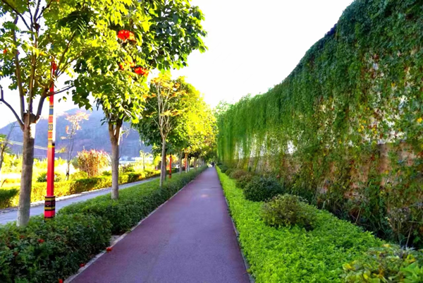 (三)坚持项目驱动,“点线面”高标准建设。对照“绿美城市”建设指标,精准“补短强弱”。一是做精出入口绿化景观。突出和融入南涧山、水、文化等特色,精心打造以“生态”为核心、以“绿美”“观光”为目的的南北2个入城口。二是实施“拆墙透绿”工程。积极鼓励全县机关单位拆除围墙和铁栏,开展绿化美化,与民共享,实现“开窗见绿,出门入园”的生态美景。三是做好“引水入城”文章。利用南涧河、乐秋河、得胜河三面来水优势,以水就势建设滨河公园、水系公园、湿地公园、农耕公园。四是打造园林水系步行街。遵循因地制宜、突出特色的建设理念,在县城核心地带建设带状园林水系景观休闲慢道,全长约3230米,以南涧的“山、水、情”为设计理念,融入水系、漫道、小品、花草、亭廊等景观附属设施,整个县城形成“点线面”相融相通的一座大公园。