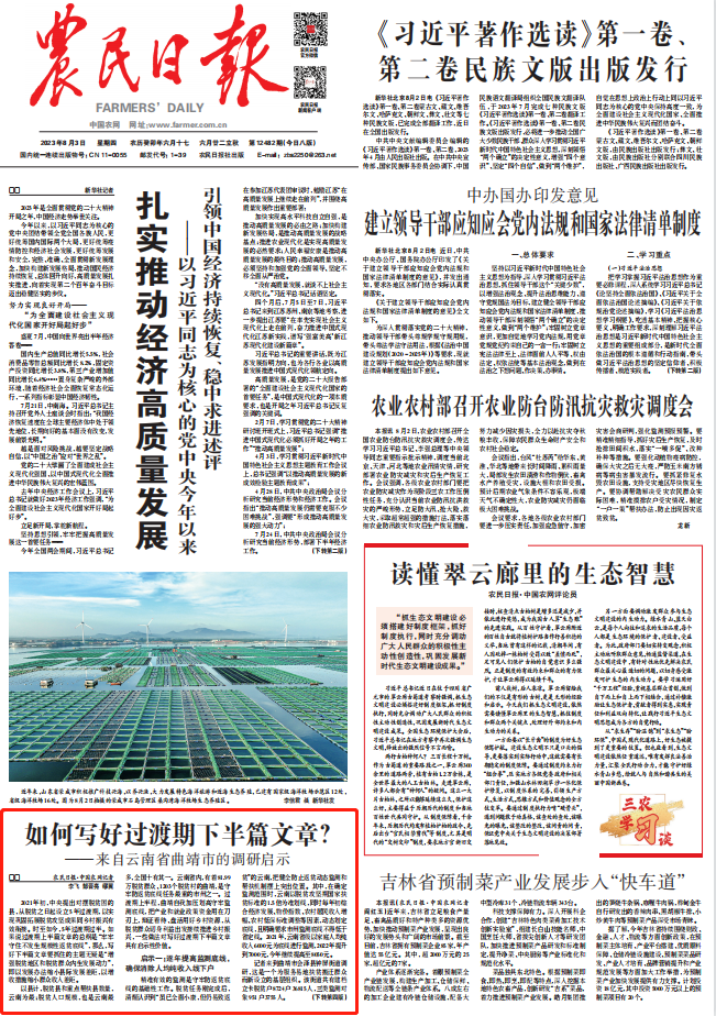 原标题:如何写好过渡期下半篇文章?——来自云南省曲靖市的调研启示