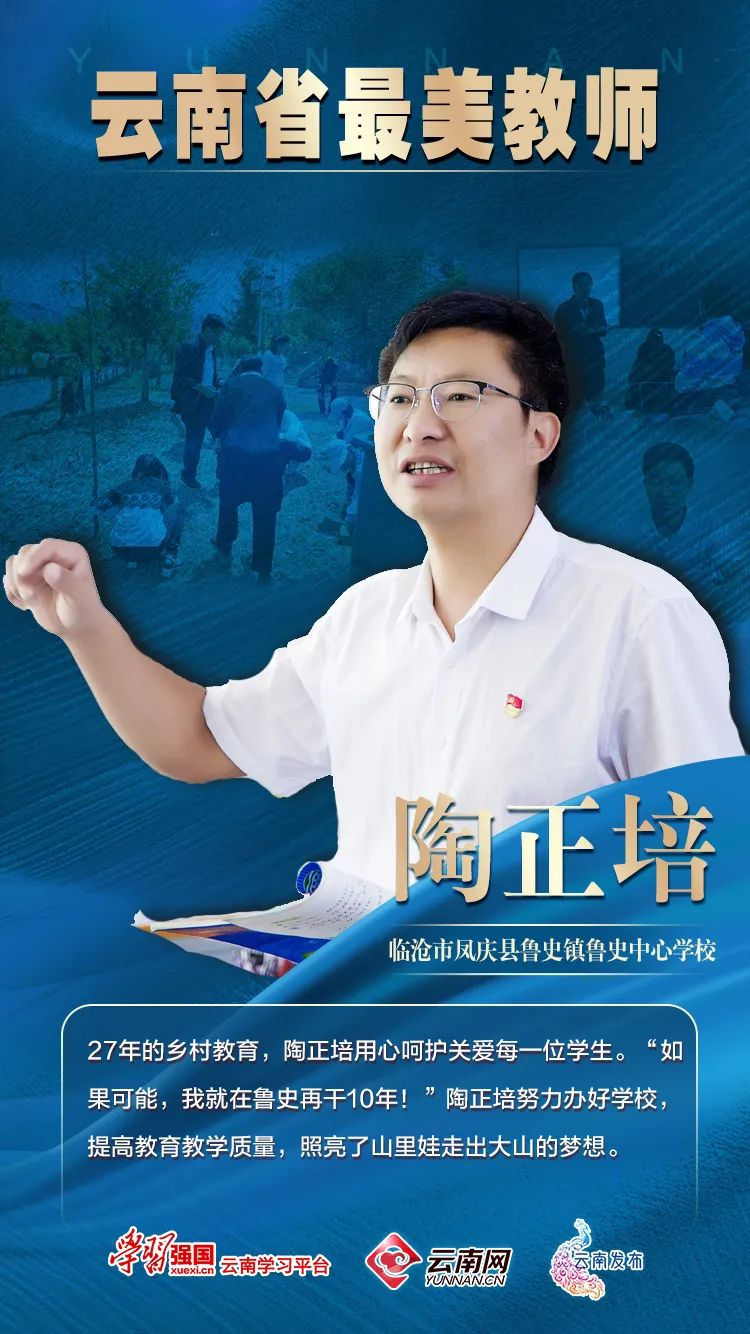 中共云南省委教育工委、云南省教育厅联合云南网、云南发布、“学习强国”云南学习平台推出“躬耕教坛 强国有我”宣传专栏,让我们一起致敬扎根云岭大地、潜心教书育人的教师们。第二期,我们走近“最美教师”临沧市凤庆县鲁史镇鲁史中心学校陶正培老师。