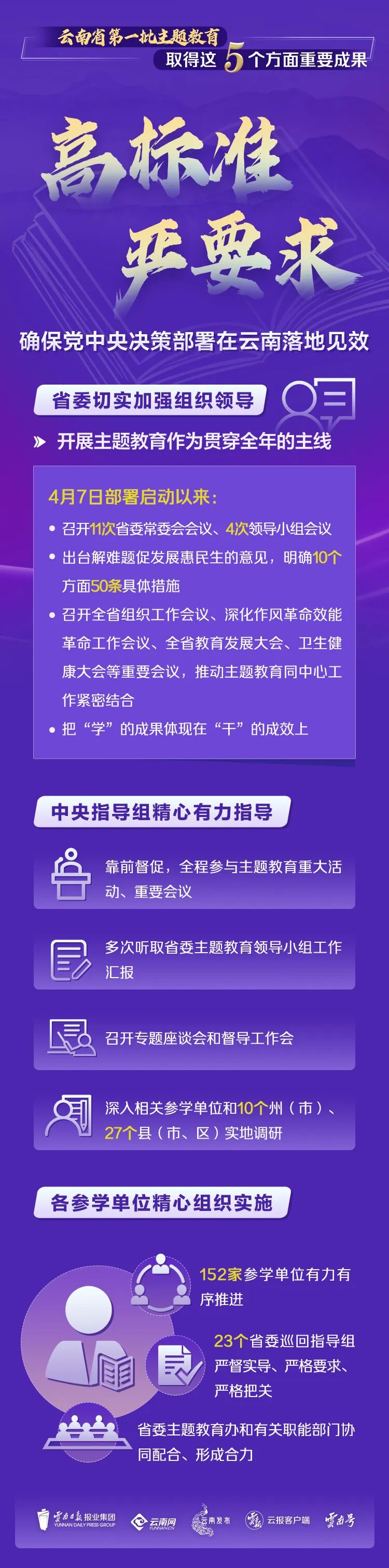 云南省第一批主题教育5个重要成果主要体现在哪些方面?从中你能“抄”到哪些“笔记”?一起来看推进主题教育系列图解①《高标准严要求 确保党中央决策部署在云南落地见效》——