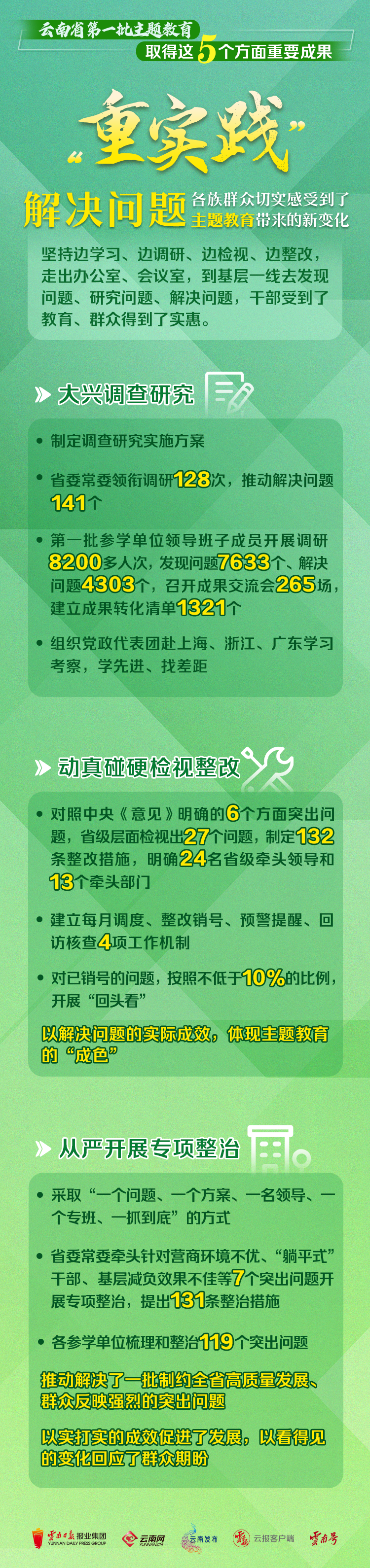 云南省第一批主题教育5个重要成果主要体现在哪些方面?从中你能“抄”到哪些“笔记”?一起来看推进主题教育系列图解④《“重实践”解决问题,各族群众切实感受到了主题教育带来的新变化》——