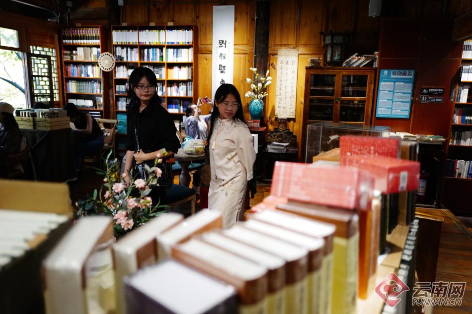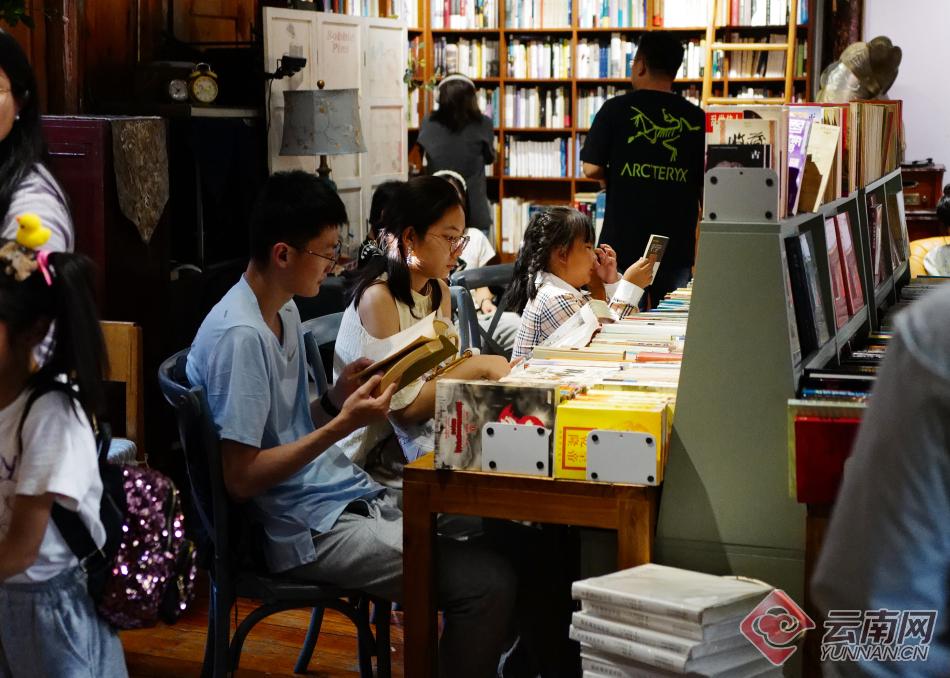 10月3日下午,昆明老街上的东方书店,前来的选书、看书游客络绎不绝,不少人选几本好书畅游书海,用阅读的方式度过别有意义的午后时光。