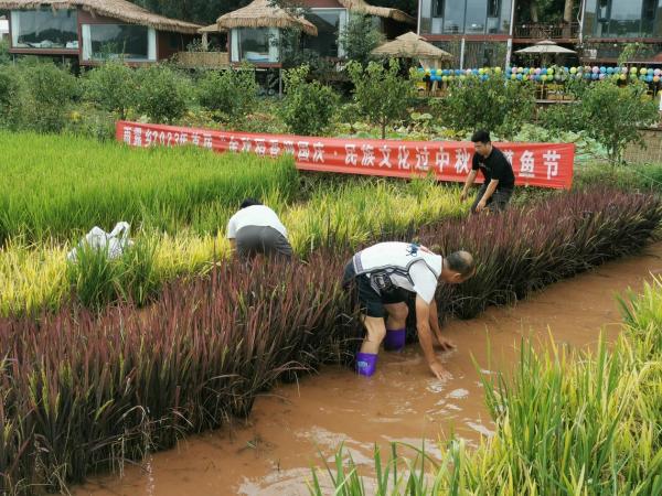 9月29日,以“金秋稻香迎国庆 民族文化过中秋”为主题的雨露乡首届摸鱼节在阿呀噜田园农庄和罗文稻花鱼养殖基地成功举办。