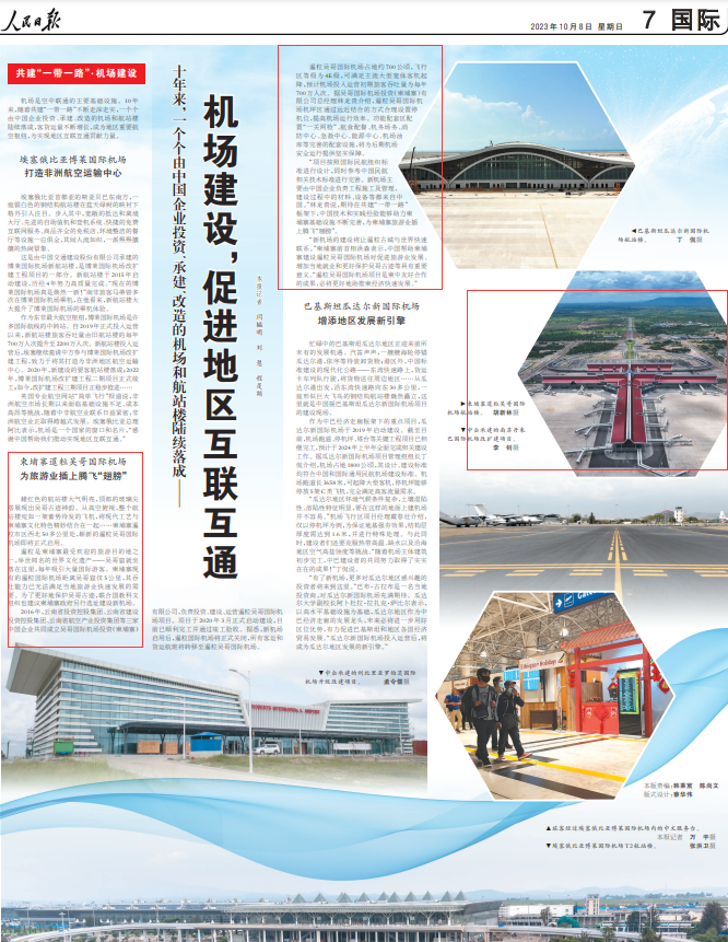《人民日报》整版聚焦共建“一带一路”机场建设情况