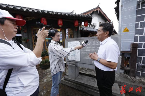 “沿着长江读懂中国——万里长江行”主题宣传推广活动探访调研团走进云南丽江古城,采访当地文化学者。探访调研团成员王筝 摄