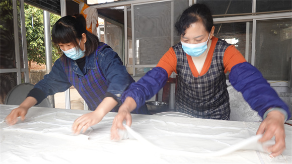 “从我做手工卷粉开始就有好多人找着来买,我就想着把它传下去,祖祖辈辈的手艺不能失传。”李会仙说。