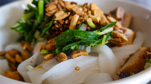 卤鸡卷粉、凉拌卷粉……卷粉配上不同的“伴侣”就能呈现不一样的美味。李会仙家的餐饮店生意好时一天可消耗近60公斤大米。一些身在异乡的开远人还专程赶来品尝这道“家乡味”。
