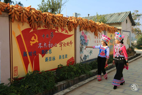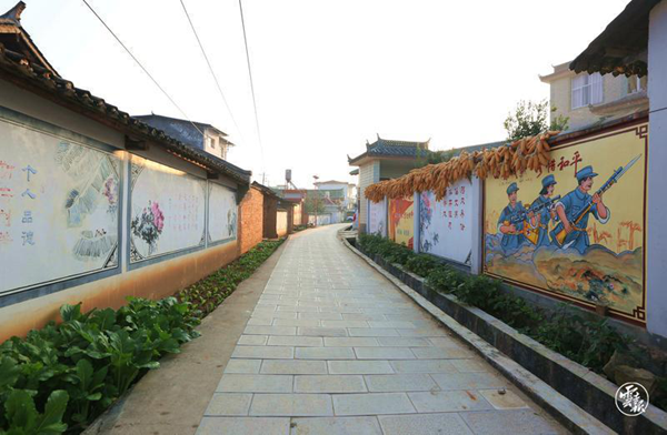 走进牟定县江坡镇大江坡村,只见干净整洁的道路贯穿村庄,一幅幅构思巧妙、色彩绚丽、栩栩如生的墙体彩绘醒目抢眼,布置在房前屋后的小花园把村庄装扮得靓丽多姿,呈现“村在绿中、绿在村中”的怡人景象。