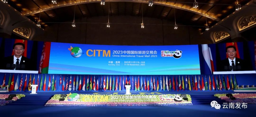 11月17日,由文化和旅游部、中国民用航空局、云南省人民政府共同主办,以“你好!中国”为主题的2023中国国际旅游交易会在昆明开幕。