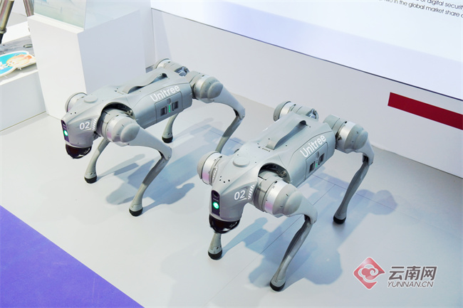 前扑、握手、跳舞、比心……数贸会现场,两只杭州第19届亚运会同款机器狗正在与观众热情互动,撒娇卖萌招揽人气,现场氛围直接拉满。“该机器人配备4D超广角激光雷达,感知系统提升200%,在亚运田径赛场上承担了铁饼运输工作。”宇树科技工作人员介绍,针对本届数贸会,公司开发了机器狗的语音智能互动,大家可以与机器狗交流有关数贸会的问题。此外,机器狗内置了数字讲解系统,实现导览讲解的数字化服务,大家可以跟随机器狗“笨笨”游览数贸会。