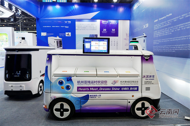在以“未来,智能,交互”为主题的数智出行馆,以智能汽车和绿色能源为数字智能产品贸易板块的典型代表,聚焦动力系统、自动驾驶系统、人机交互系统等三大数字化系统,分层分类地展现数字出行新业态,观众们可以体验到出行前沿技术带来的变革。现场云集无人车领域的龙头企业,触感科技、新石器、赫千等知名品牌大秀无人车黑科技,全线呈现汽车领域最前沿的创新科技和技术突破。“新石器的无人车产品,主要提供给物流企业去经营,帮助企业降本增效。”新石器慧通科技有限公司工作人员介绍,本届数贸会现场,观众可以通过新石器的无人车购买雪糕、饮品等,体验无人车的应用场景。在未来的应用上,无人车将成为一个提供运输、配送、零售等服务的移动平台,让智慧生活连接到更多人。