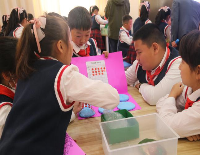 学生们在参与《走近化石 悦享劳动》劳动教育融合课(2023年11月20日摄)。