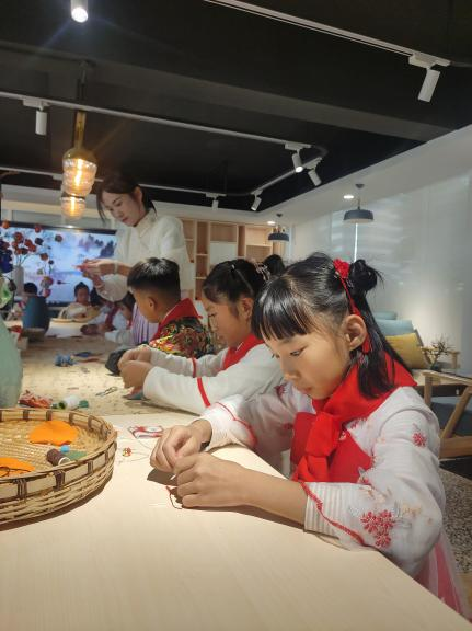 凤山小学孩子们在制作手工香囊(2023年11月20日摄)。