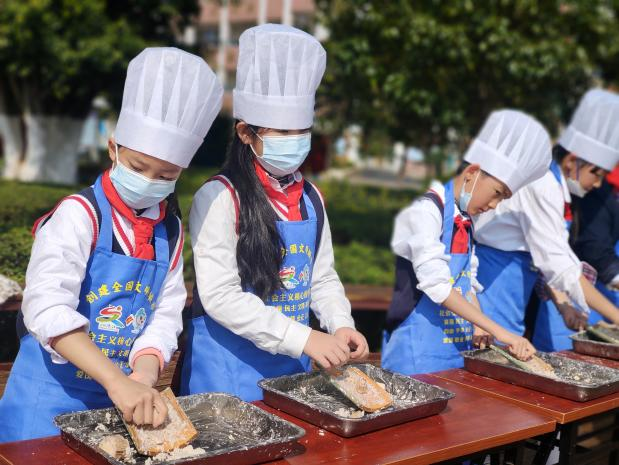 凤山小学孩子们正在制作美食(2023年11月20日摄)。