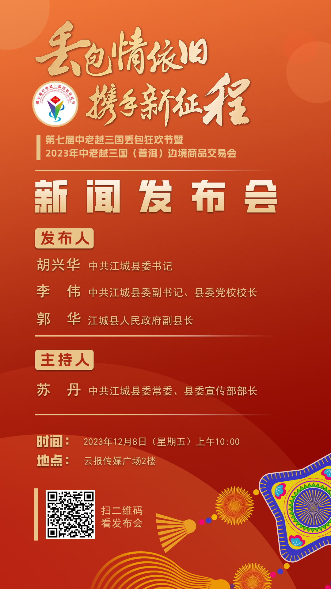 据了解,时隔六年,以“丢包情依旧,携手新征程”为主题的第七届中老越三国丢包狂欢节暨2023年中老越三国(普洱)边境商品交易会将于2023年12月22日至26日在江城县举办。