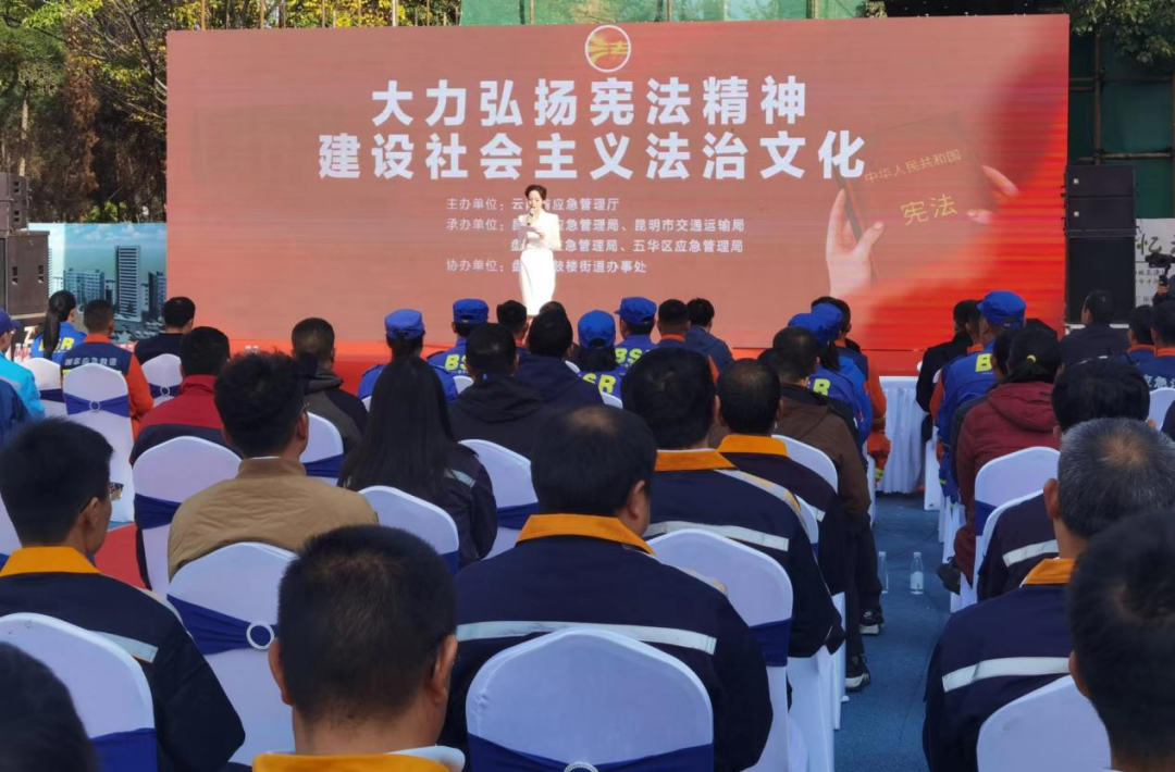 2023年12月4日是第十个国家宪法日,12月1日至7日正值第六个“宪法宣传周”。为全面贯彻党的二十大精神,深入学习宣传贯彻习近平法治思想,大力弘扬宪法精神,强化宪法意识,12月4日上午,由云南省应急管理厅主办,昆明市应急管理局、昆明市交通运输局、盘龙区应急管理局、五华区应急管理局等相关单位协办的2023年云南省应急管理厅“12·4”宪法宣传日活动在昆明市盘龙区桃源广场开展。