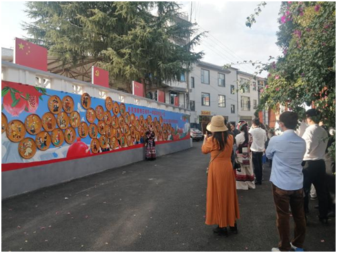 改善乡村风貌,在扮靓乡村新颜值上下功夫,探索建立校地合作模式,引入文化墙绘人才团队,结合自然条件、民族文化、风俗民情、生产生活特点,将刺绣图案采取写实的手法绘画在墙面上,吸引更多游客驻足打卡。在重要节日举办摔跤、斗牛、“大三弦”等民俗文化活动,进一步融洽村民关系、化解矛盾纠纷,民族文化成为“致富经”的同时,也成了社会治理德智教化、凝聚人心的好方法。