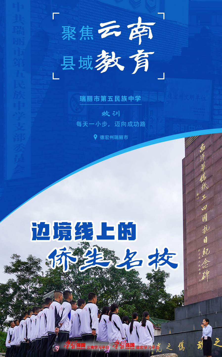作为一所“国门学校”,五十多年来,瑞丽市第五民族中学立足国门、辐射周边,每年面向德宏州招收50名华侨高中生,2019年被选为德宏州唯一一所面向全州招生的华侨学校。
