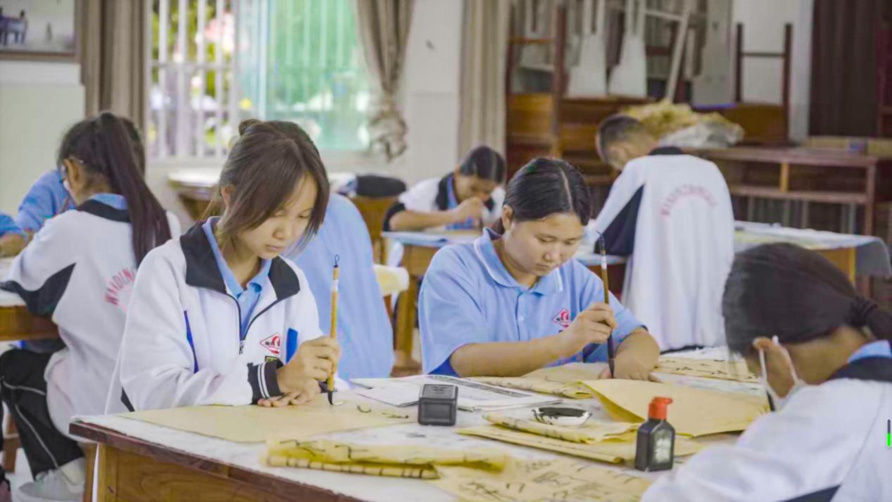 在特色课程方面,学校因材施教,根据每名华侨学生的基础不同,免费安排不同的教学内容。“很多华侨学生在校期间都会选择中国画和中国书法作为选修课,感受中国传统文化的魅力。”教务处主任张买云说。除此之外,在端午节、中秋节等传统节日,学校还会组织所有华侨学生参加包粽子、赏月等活动,增强学生对中国传统文化的认同感,让学生在体验中国文化的过程中更好地融入中国。2017年,学校聘请2名书法老师开办了德宏州第一家书法特长班,还邀请中国书法家协会、云南省书法家协会会员前来授课。在书法研习过程中,让学生在临摹中创作出自己的个性与风格,“写”出自己的人生道路。