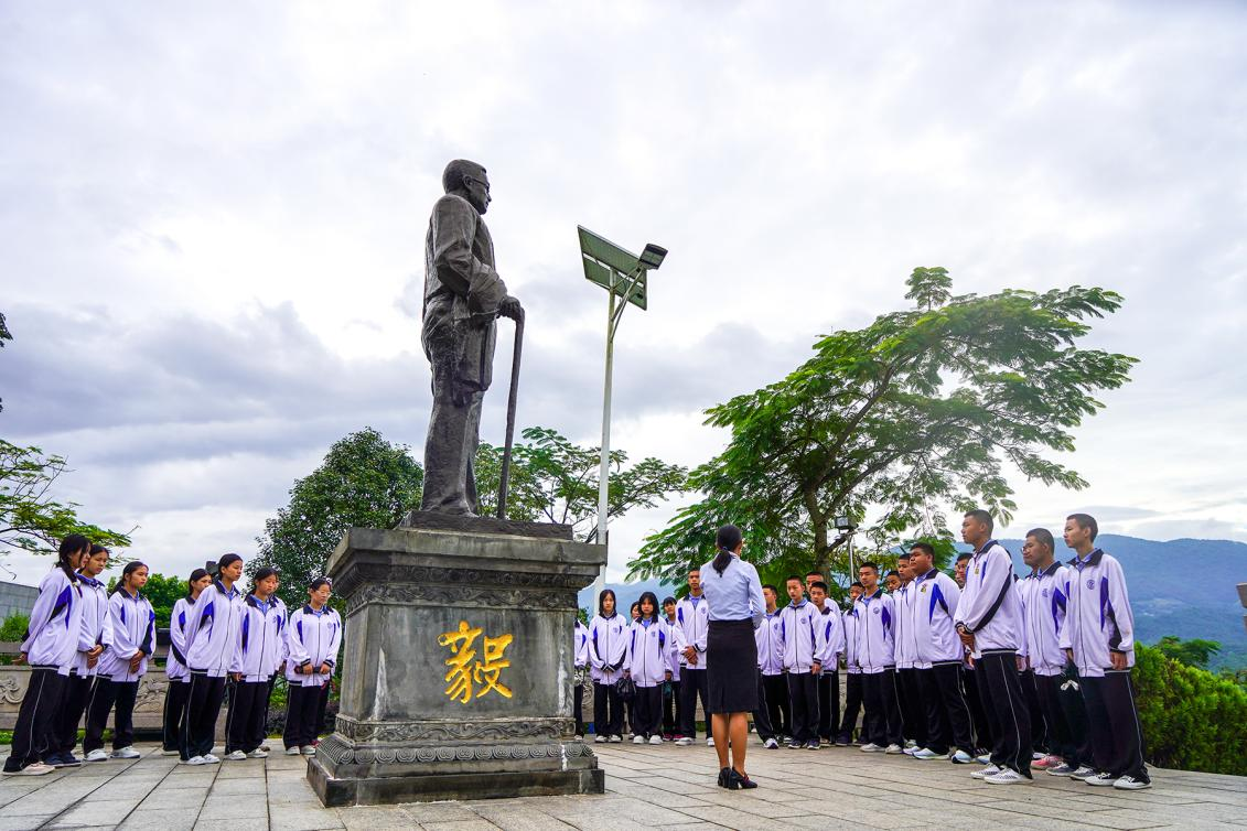 伫立在南洋华侨机工回国抗日纪念碑下,全体师生凝望着这座用血汗铸成的历史丰碑发出庄严宣誓。