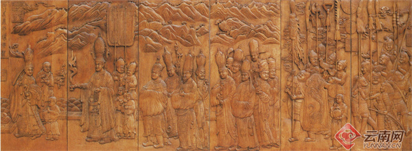 《张胜温画卷》全长16.37米,高0.3米,是纸本、设色、贴金的巨幅画卷,内容丰富,人物众多,题材独特,是研究南诏、大理国历史、宗教、文化、艺术、风俗等最重要的一件文物。全卷由利贞皇帝礼佛图、法界源流图、十六大国王众三大部分共134页(开)组成,共绘人物790多躯。画卷集佛像、人物、动物、山水树木于一体,是中国唐宋时期绘画艺术的杰出代表,在云南乃至中国美术史上占有十分重要的地位。