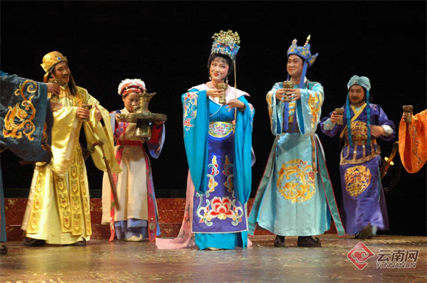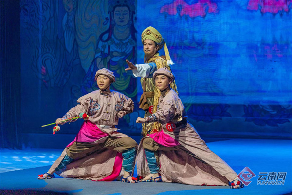 《张胜温画卷》中众多人物的服饰绘制精细出彩,具有极高的艺术价值。其大致可以分为大理国时期的宫廷服饰;佛教人物包括佛祖、观音及各类僧侣的服饰;周边十六国的王室服饰三类。为了最大程度还原画卷中的服饰,一窥南诏大理国盛世风貌,大理州文化和旅游局、州白族文化研究院、州白剧团、州群众艺术馆组建专业的研究人员、演员、模特团队,充分收集整理、考证、排练、演绎,耗费大量心血力量将历史搬上舞台。