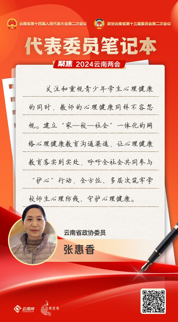 “我们能不能多一些目光,更多地关注到学校师生的心理健康问题,及时地梳理和引导好他们的心绪?”省政协委员、大理技师学院正高级讲师张惠香结合自身工作实际,把学校师生的心理健康问题作为今年两会重点关注的内容之一,并向大会提交了提案。张惠香从事教育工作30余年,她越来越深刻地感觉到,学生心理健康应该成为一项全社会参与进来长期关注的“护心”工作。