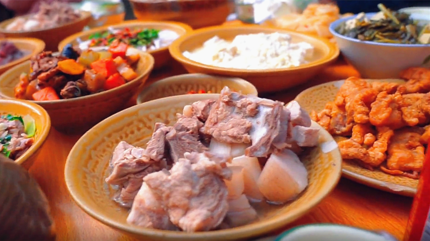 在杀年猪这一天,除了腌制腊肉外,还会做很多荤素搭配的美食。丘北县融媒体中心 供图