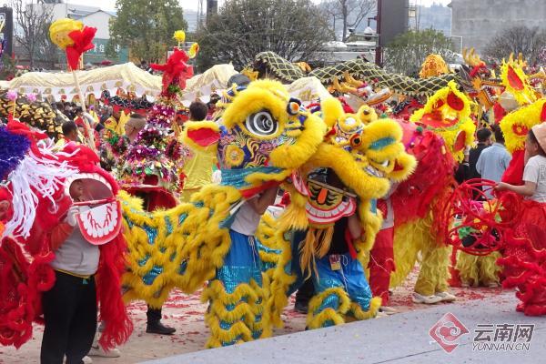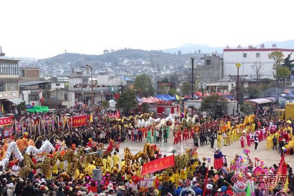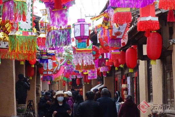 一大早,唱灯、崴灯、耍灯和看灯的人们就把这座滇西茶马古道上的小镇围挤得水泄不通,大街小巷张灯结彩,接灯、彩灯展演、传统花灯展演、龙狮闹春、“过街灯”展演等不间断的活动将节日氛围烘托至高潮。