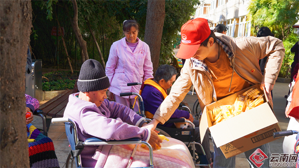 “奶奶,我来给您捶捶背,捏捏腿。”3月6日上午,云南报业传媒(集团)有限责任公司团委联合昆明同仁医院、昆明普瑞眼科润城院以及旺旺集团联合举办了以“奉献 友爱 互助 进步”为主题的团日活动。走进云南老年之家敬老院(长青公寓),志愿者们身着红马甲,给老人们送去温暖,现场气氛活跃,好不热闹。有的志愿者给老人捶背捏肩,与老人亲切交谈,询问他们的身体状况和生活状况;有的志愿者拿起清洁工具在院子里打扫卫生……一时间欢声笑语充斥着整个敬老院。