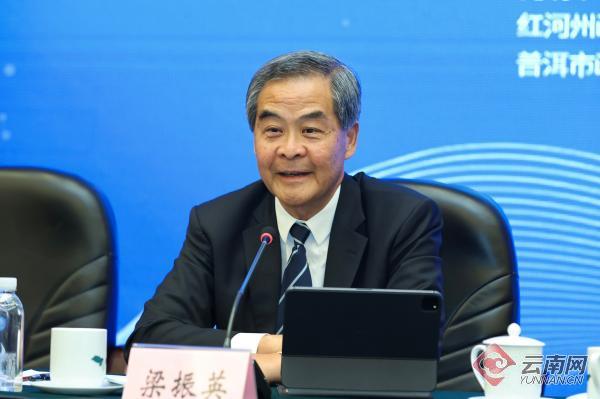 梁振英在致辞时表示,中共云南省委深入贯彻习近平总书记考察云南重要讲话精神,团结带领各族干部群众,围绕“3815”战略发展目标,大力发展资源经济、园区经济、口岸经济,全省高质量跨越式发展迈出新步伐,为香港与云南深化合作创造了更加广阔的空间。希望香港和云南认真落实习近平总书记重要讲话重要指示精神,更好融入国家发展大局,在服务国家战略中找准深化两地合作的方向和重点,进一步用好香港贸易服务、物流体系、检测认证、品牌建设等优势,助力云南好产品走向更大市场、卖出更好价钱。进一步促进各自所需所长精准对接,实现优势互补、相互赋能、共同发展,让香港的作用更好发挥出来,把云南的潜力更大激发出来,助力云南高质量发展。进一步丰富滇港交往交流内容和形式,积极推动政府、企业、专家学者等各方面人士加强往来,不断扩大朋友圈,持之以恒、久久为功做好滇港交流合作大文章。希望以此次活动为契机,在更广领域、更深层次、更高水平上务实推进滇港合作,更好服务国家发展战略。