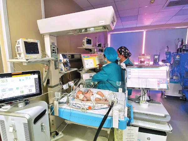 医护人员正进行危重新生儿救治。 供图