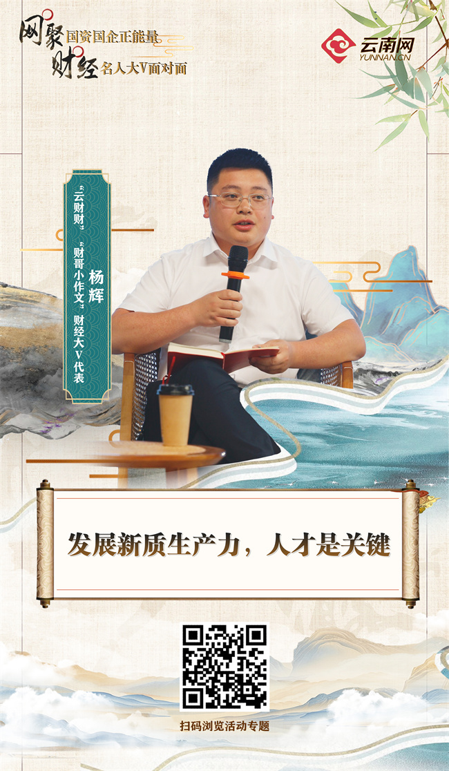 国资国企发展新质生产力面临哪些挑战与机遇?杨辉认为,一是人才。无论在任何时代,最核心的资源还是人才。云南国企能不能引进创新人才、能不能用好现有人才很关键。二是环境。企业应当营造一个有利于人才创新、有利于人才施展才能的环境,少一些形式主义,给予人才试错的空间。三是思维。相关部门应在体制机制上为发展新质生产力扫清障碍。四是资金。只要项目好、生产力强,国企可充分发挥融资优势,借力民间投资,解决资金难题。