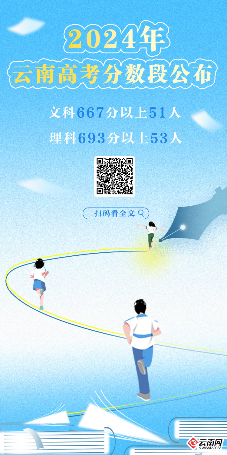 云南网讯 6月23日,云南省招生考试院公布了2024年云南省高考成绩分数段统计表。据统计,全省文科667分以上的有51人,理科693分以上的有53人。