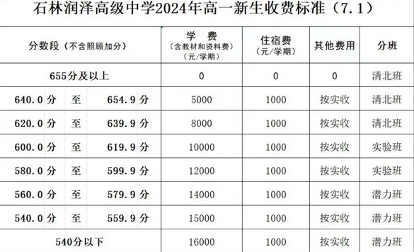 5.一级完中录取线下为自费生,我校2024年高一自费生的学费为11800元/学期,住宿费800元/学期。