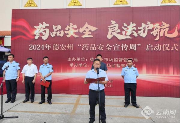 9月2日,德宏州2024年“药品安全宣传周”活动启动仪式在芒市举行。州市场监管局、州检验检测院、州药品不良反应监测中心、芒市市场监管局、芒市疫苗管理工作领导小组成员单位等单位领导及相关工作人员,“两品一械”生产经营使用单位代表、社区群众、新闻媒体等共200余人参加启动仪式。
